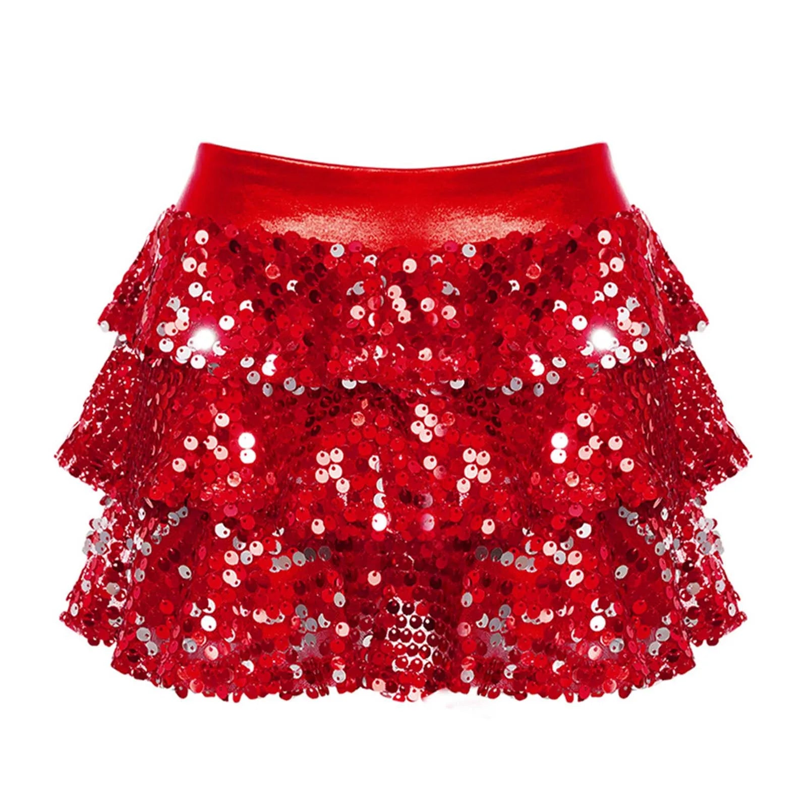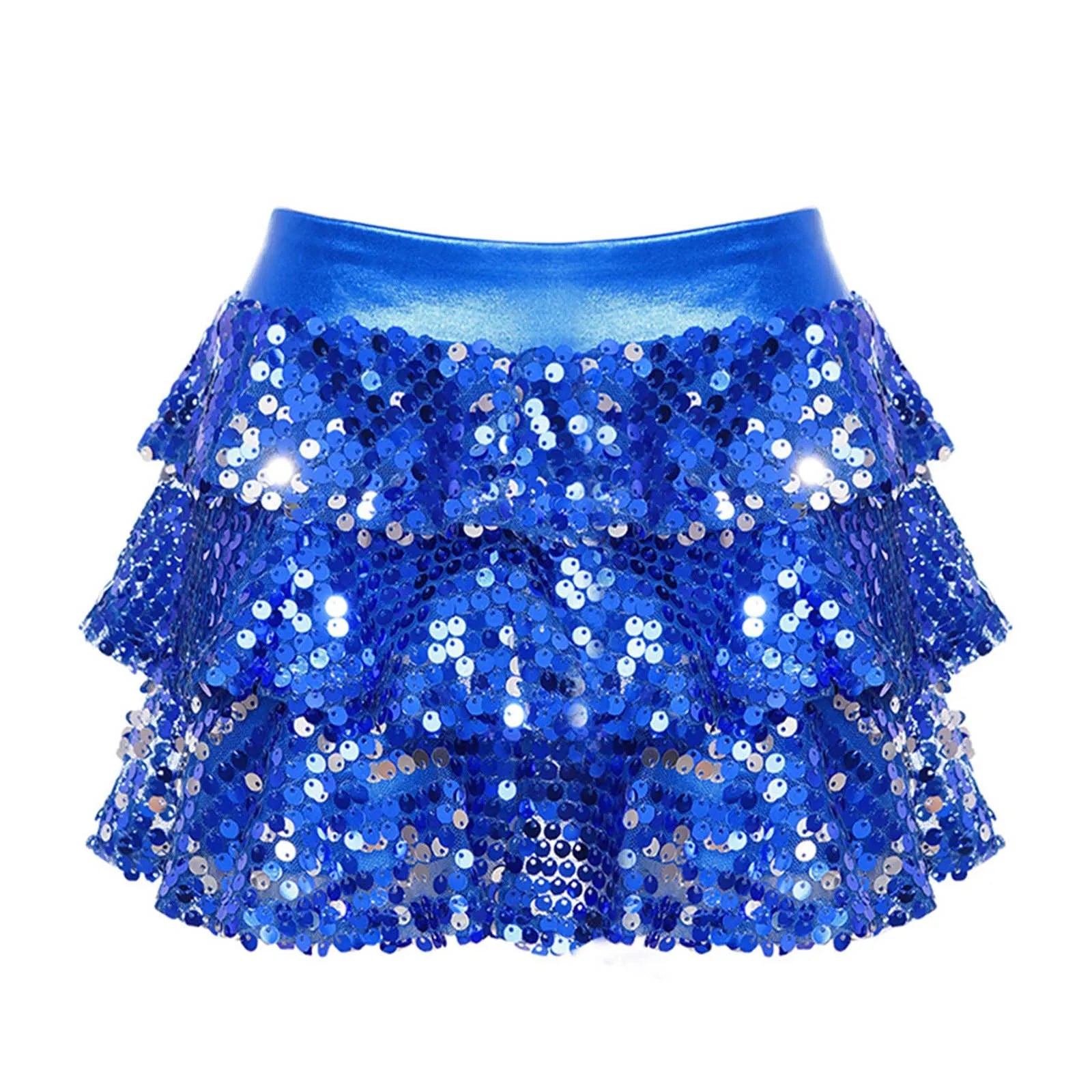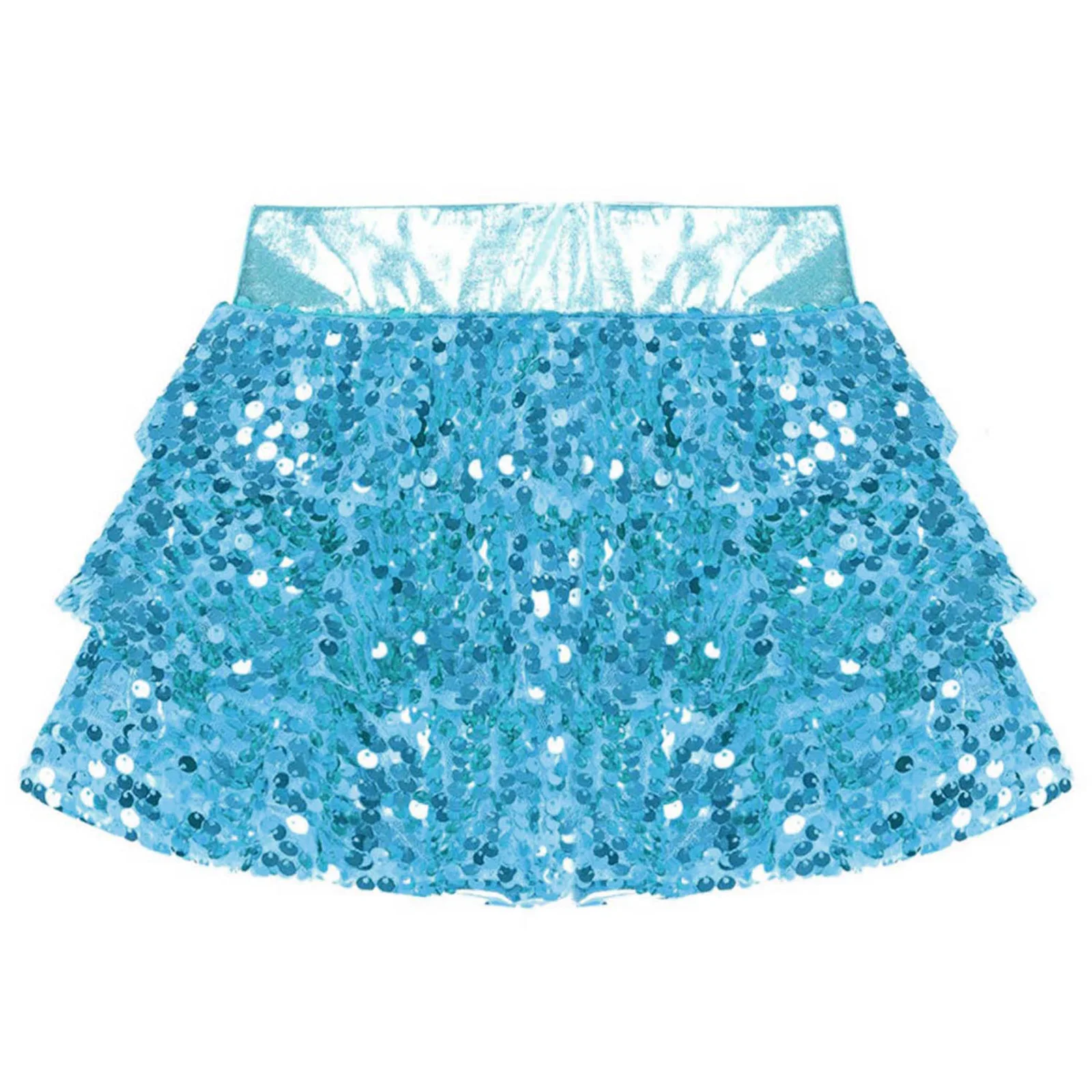 Girls Metallic Culottes Dance Skirt 2025 Kids Shiny Sequins Elastic Waistband Tiered Ruffled Skirted Birthday Party Costume