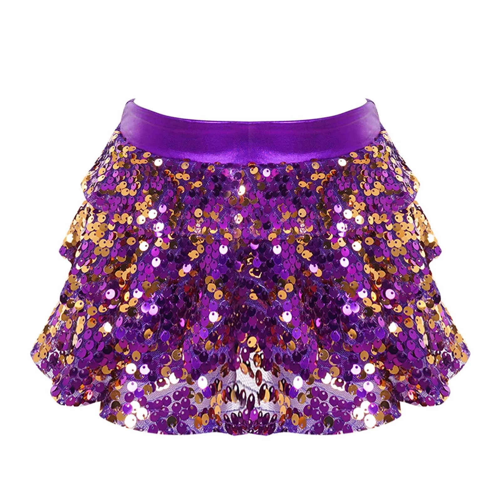 Metallic skirted shorts allow your girls to move freely and enjoy the dance, elastic waistband for a better fit.